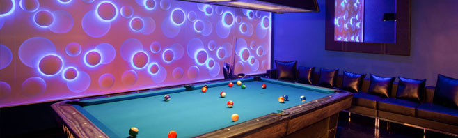 Located in South Beach Miami, Florida. Impact Lighting Inc.fabricated custom galaxy LED lighted walls to be installed at the new night club along with its evermore popular fiberoptic concrete bartops. the LED color changing Galaxy System walls punctuate many of the decorative elements throughout the bar and club.