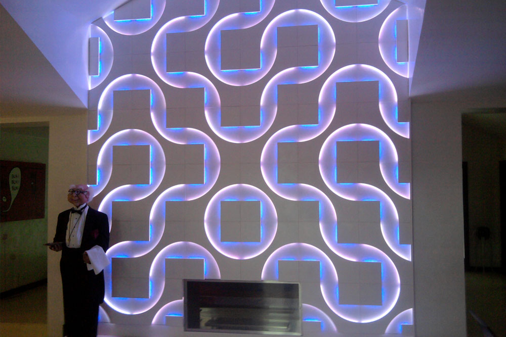 Impact Lighting’s GALAXY PANELS are a designed as wall surfacing system that work in multiples to create a continuous, sculptural lit wall. Galaxy Panels interlock ensuring panel-to-panel alignment. Repeating panels accommodate all size walls and can be trimmed on-site for a custom fit. Panel sizes range from 2 feet to 8 feet with custom sizes available..
